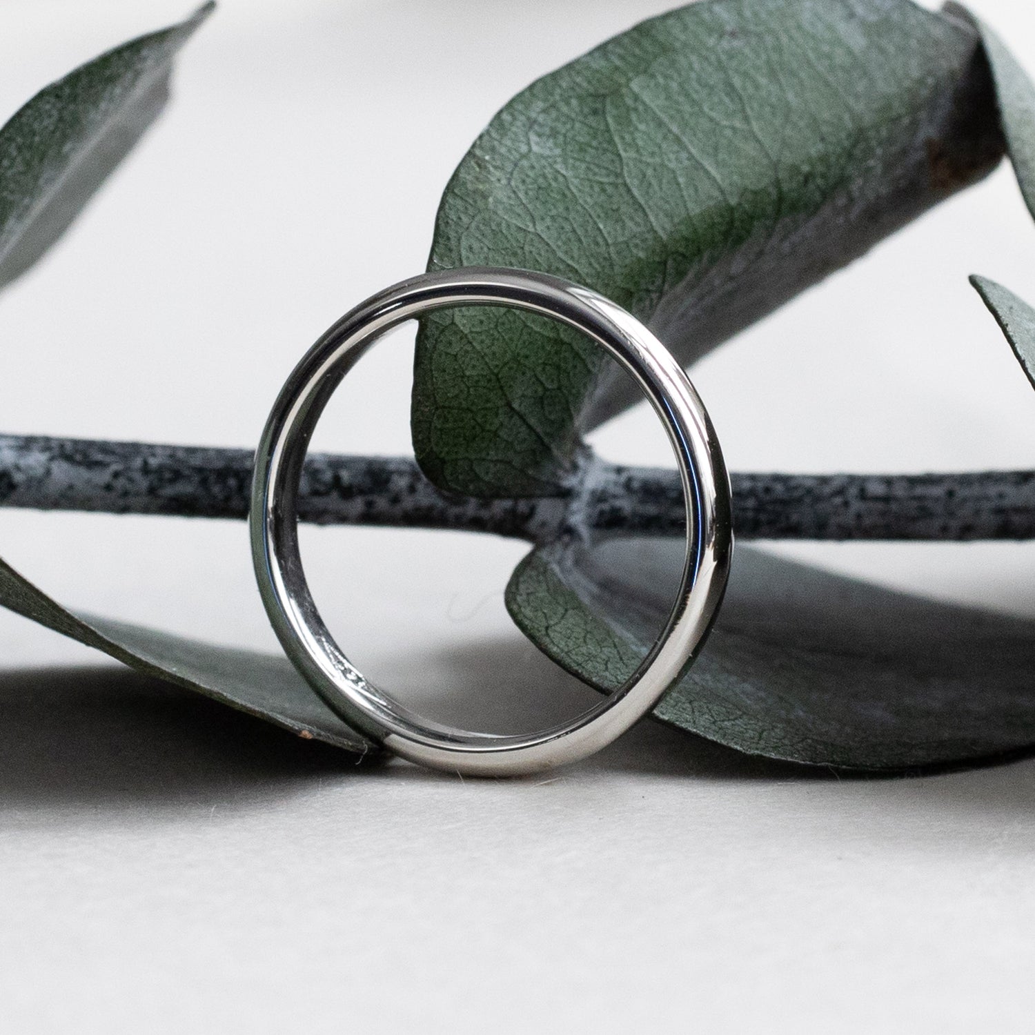 Half round platinum wedding band
