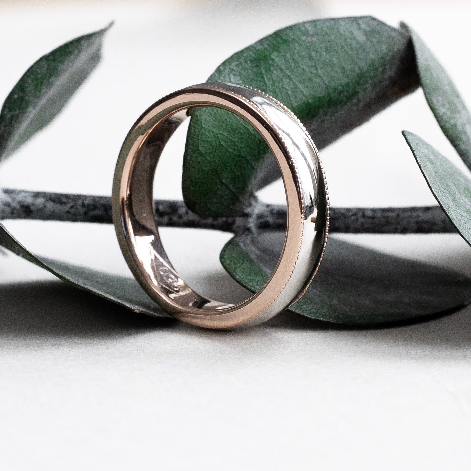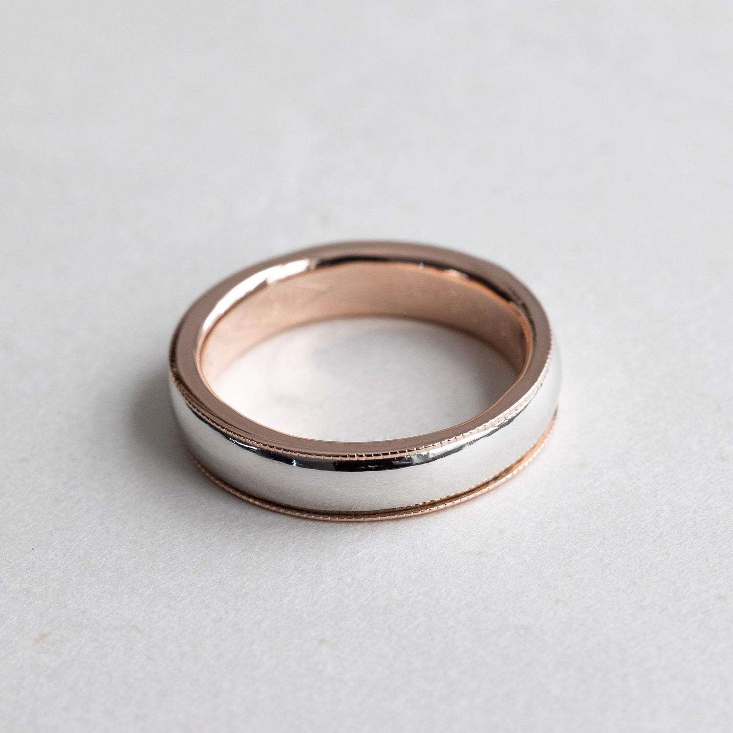 Two-tone wedding band in platinum and 18k rose gold